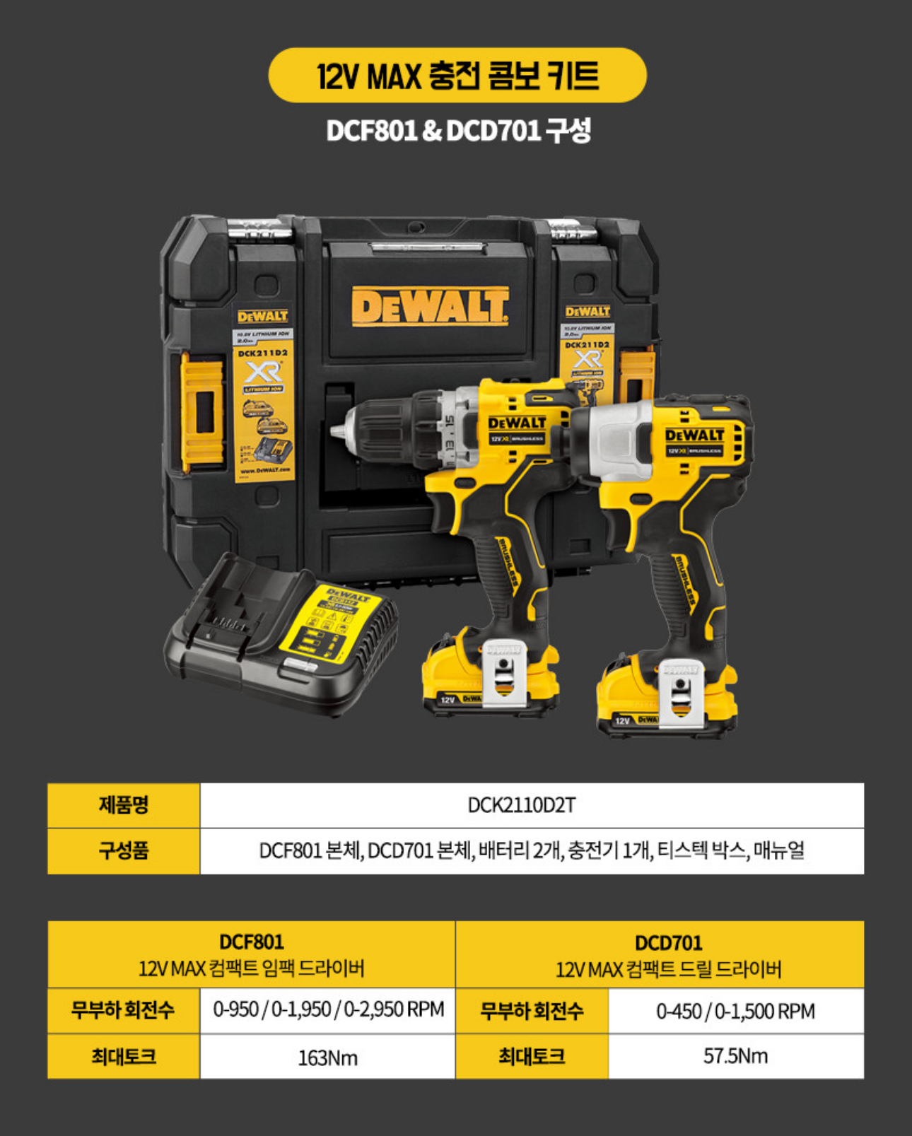 [Dewalt]디월트 충전 콤보 세트 DCK2110D2T