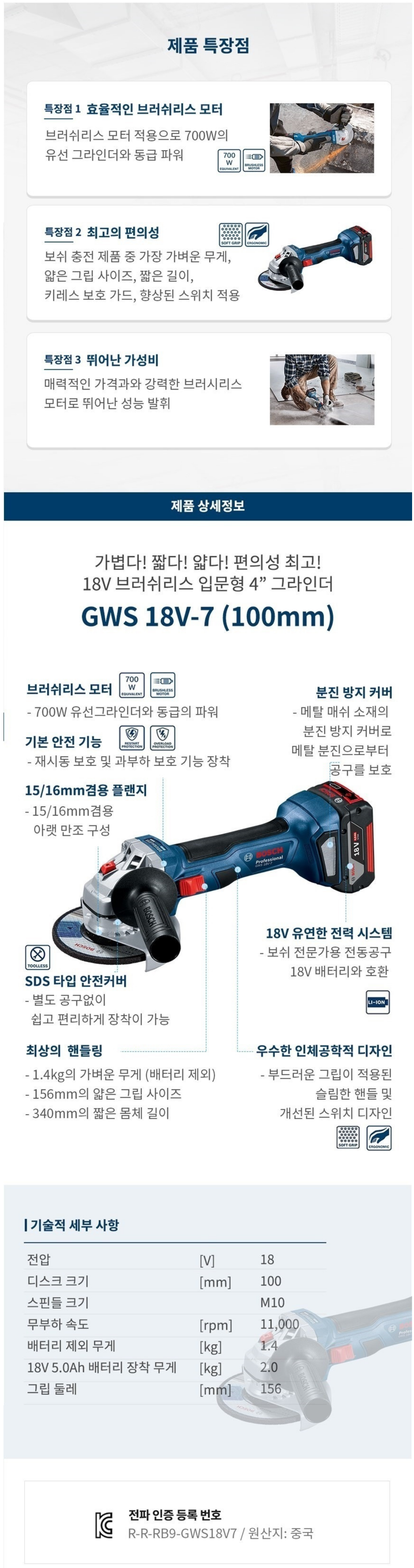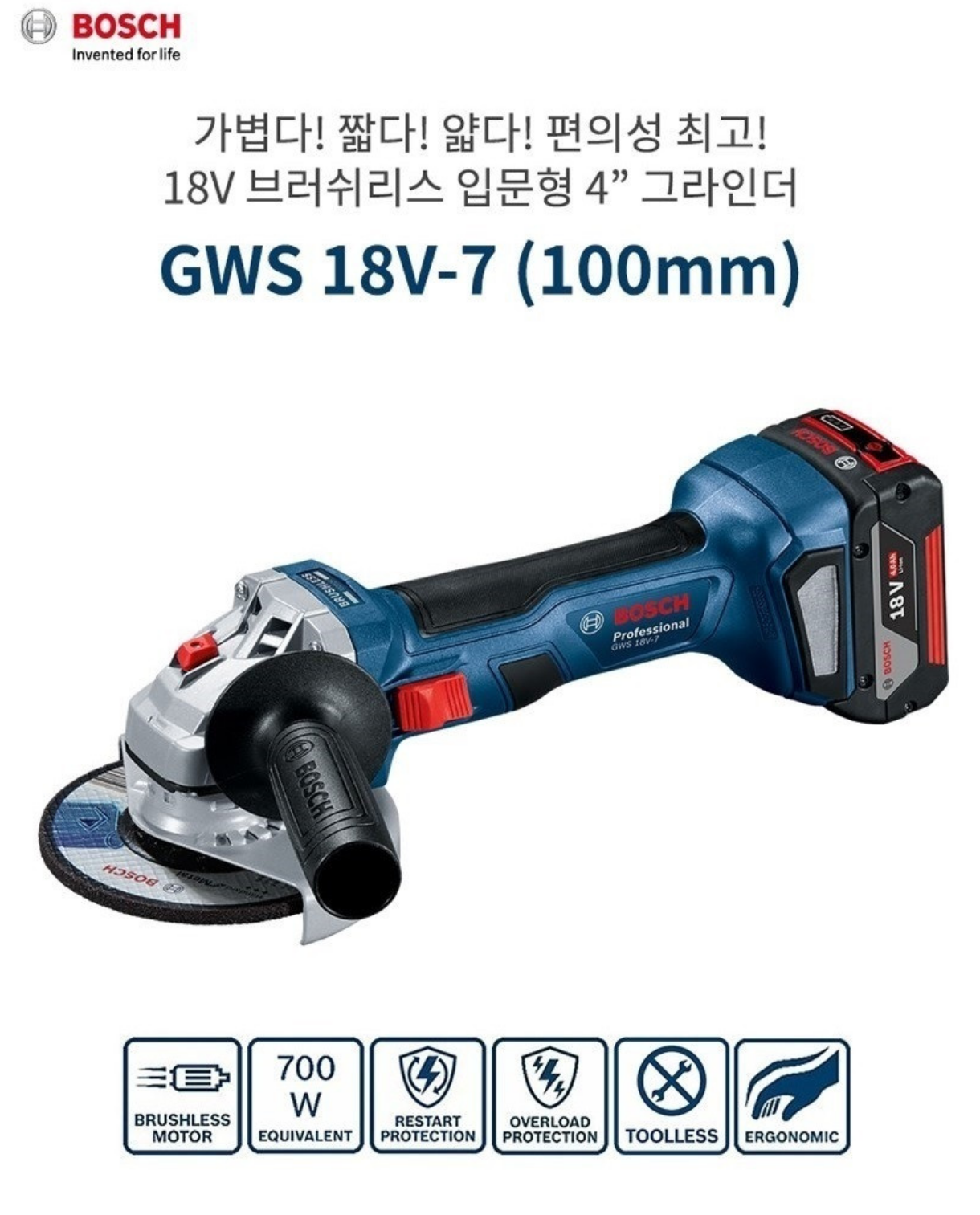 [BOSCH]보쉬 충전 앵글 그라인더 GWS 18V-7 PROFESSIONAL