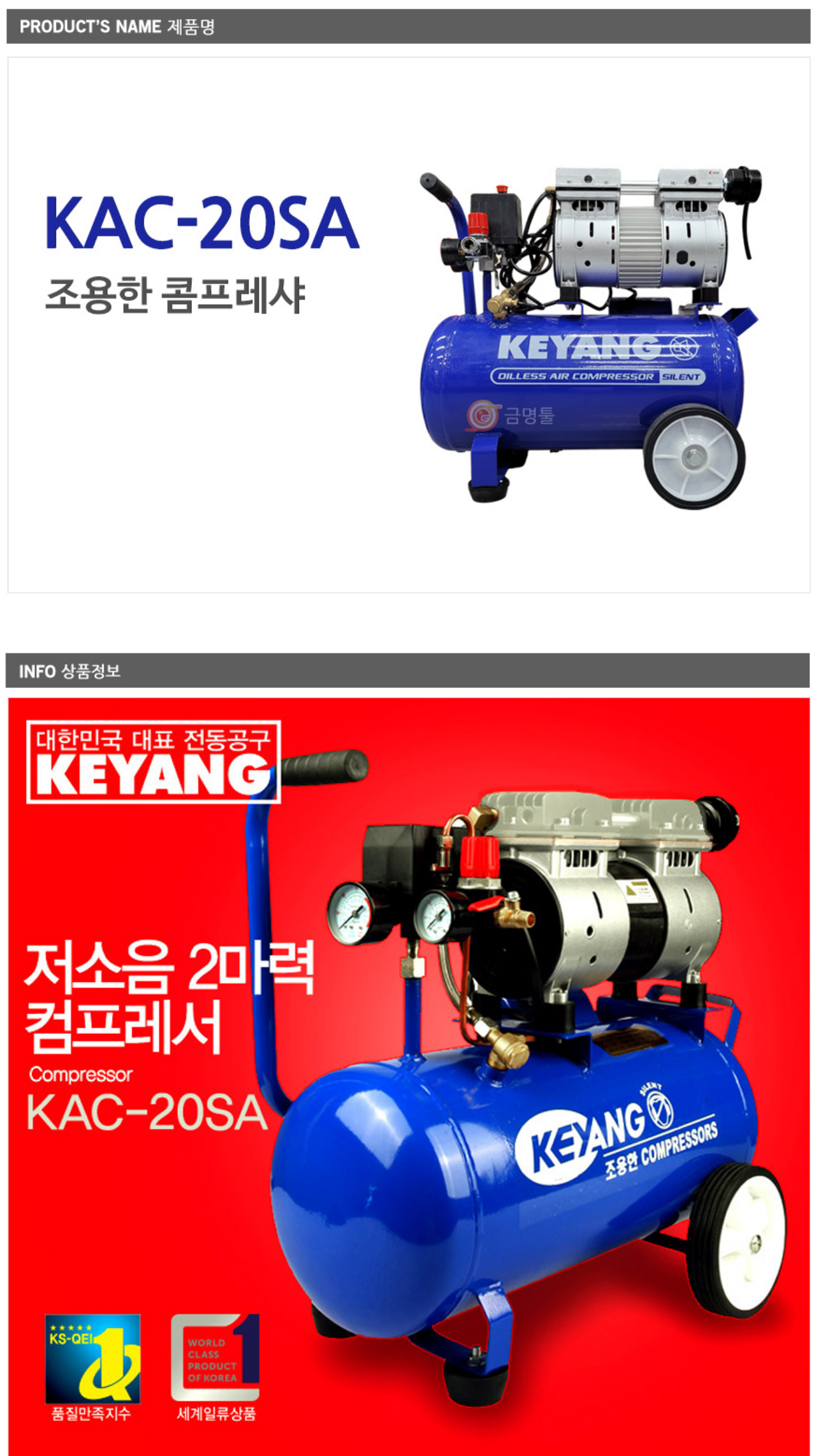 [KEYANG] 2마력 저소음 콤프레샤 컴프레셔 KAC-20SA